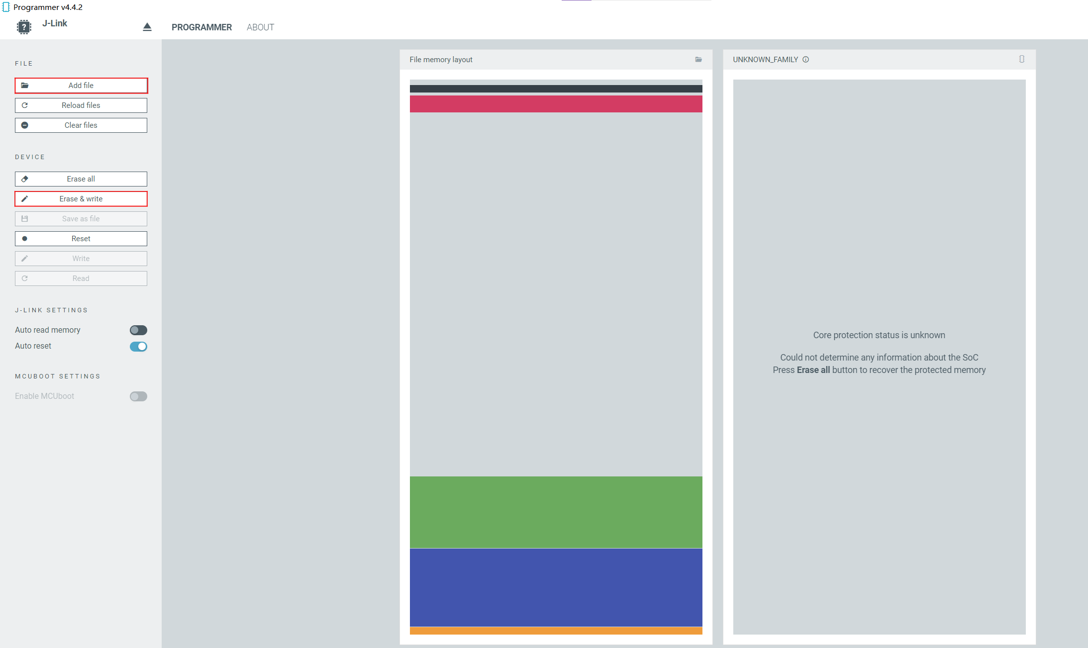 添加文件,同时选择bootloader文件和firmware文件,点击 Erase&write ,即可完成烧录