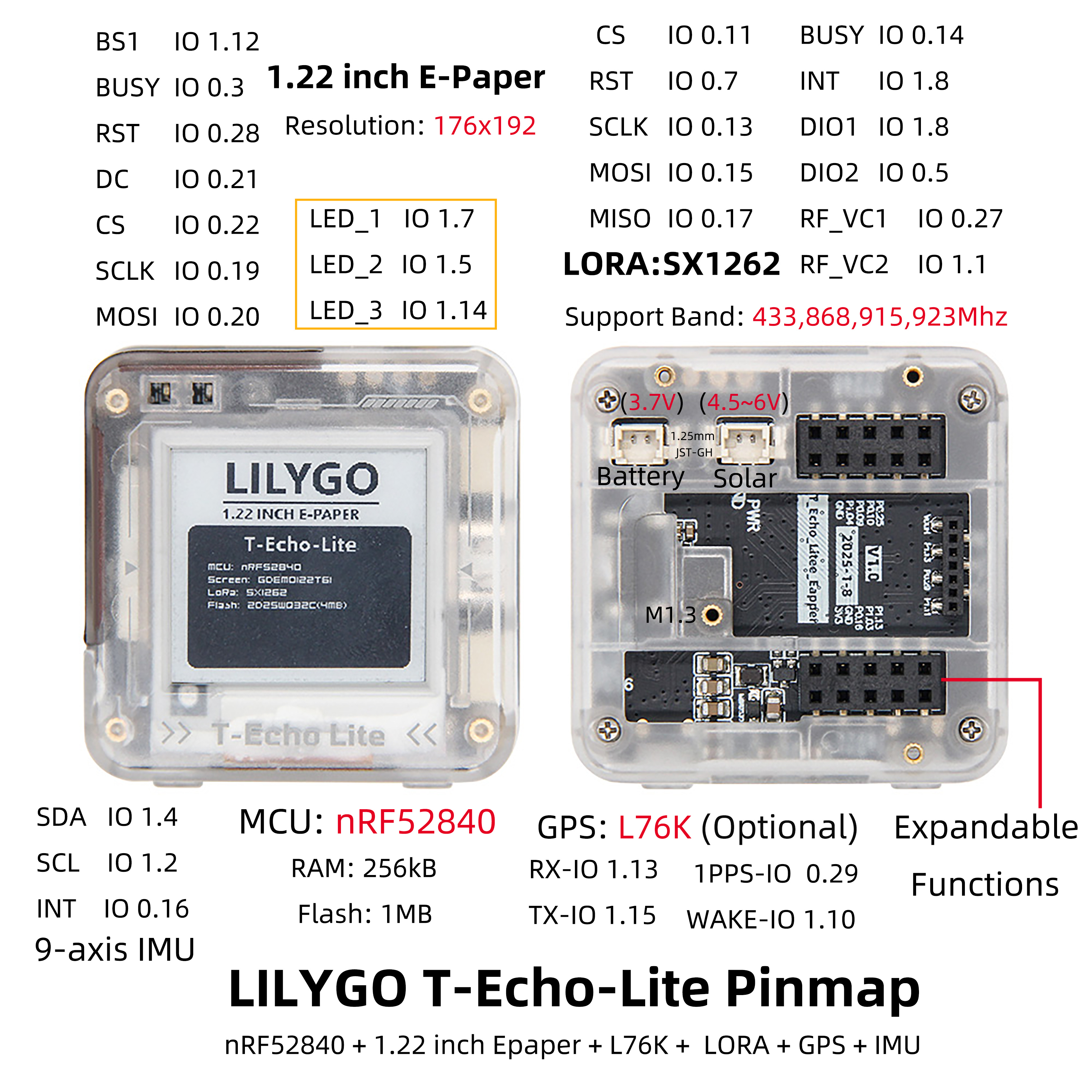 | T-Echo-Lite | nRF52840 | 1M | 256kB | LoRa + E-Paper | LILYGO Mall |